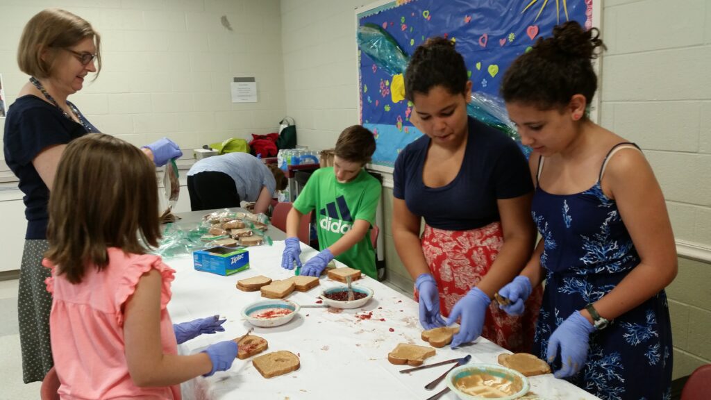 There are three ways to serve in this vital ministry: Shopping for the food, helping to prepare the meals, and volunteering to ride the van and serve the meals. Volunteers sign up for a one-time commitment in a given month. Families have strongly embraced all three service opportunities.